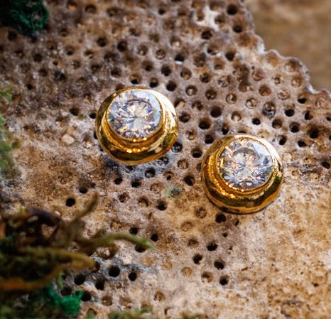 We love these earthy, tough, everyday "diamond studs". They're CZ's - but look like 1 carat diamonds.