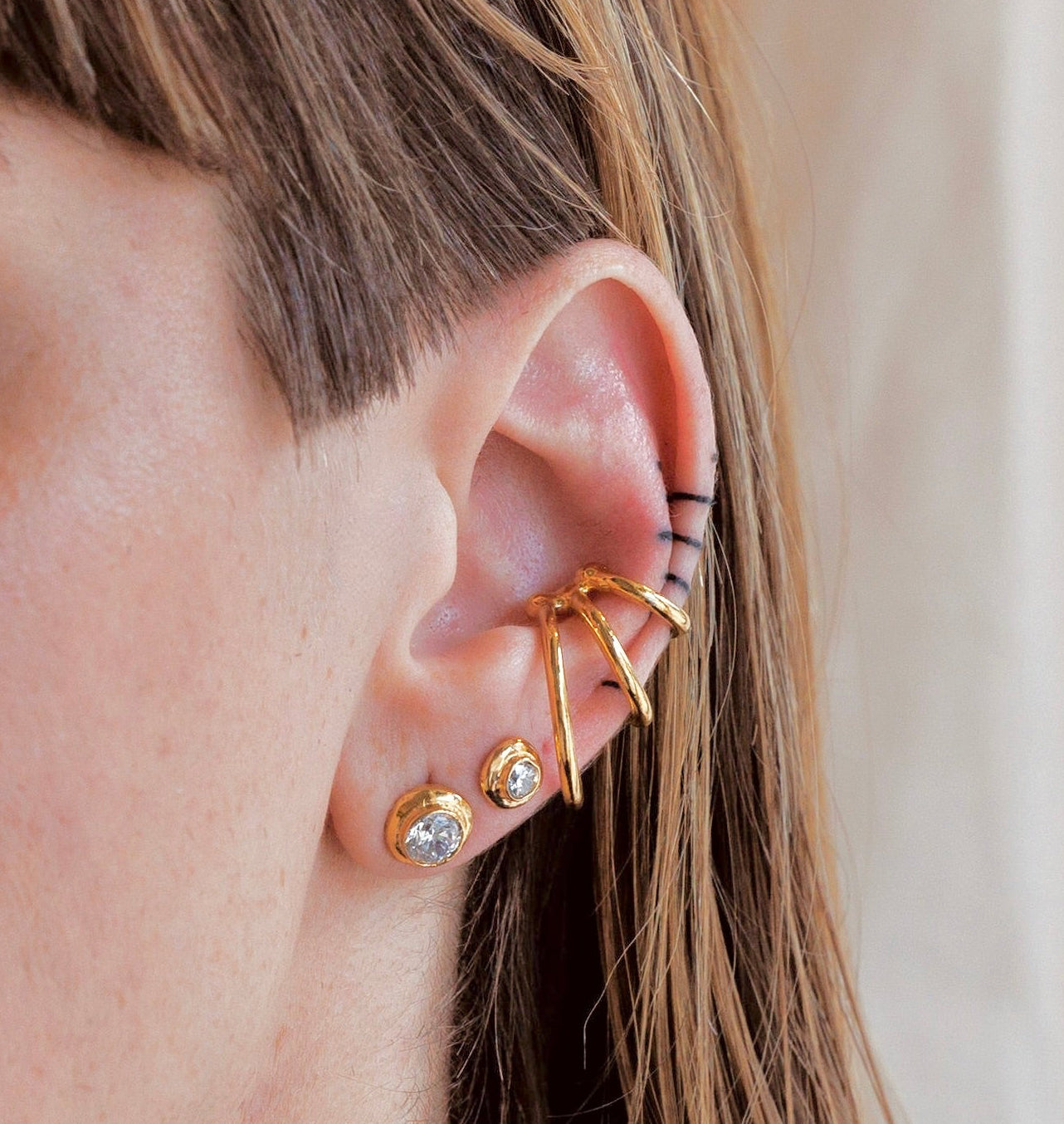 Photos on model show 6mm lower piercing , 4mm upper piercing. Last photo shows size difference between the 6mm & 4mm CZ Studs,