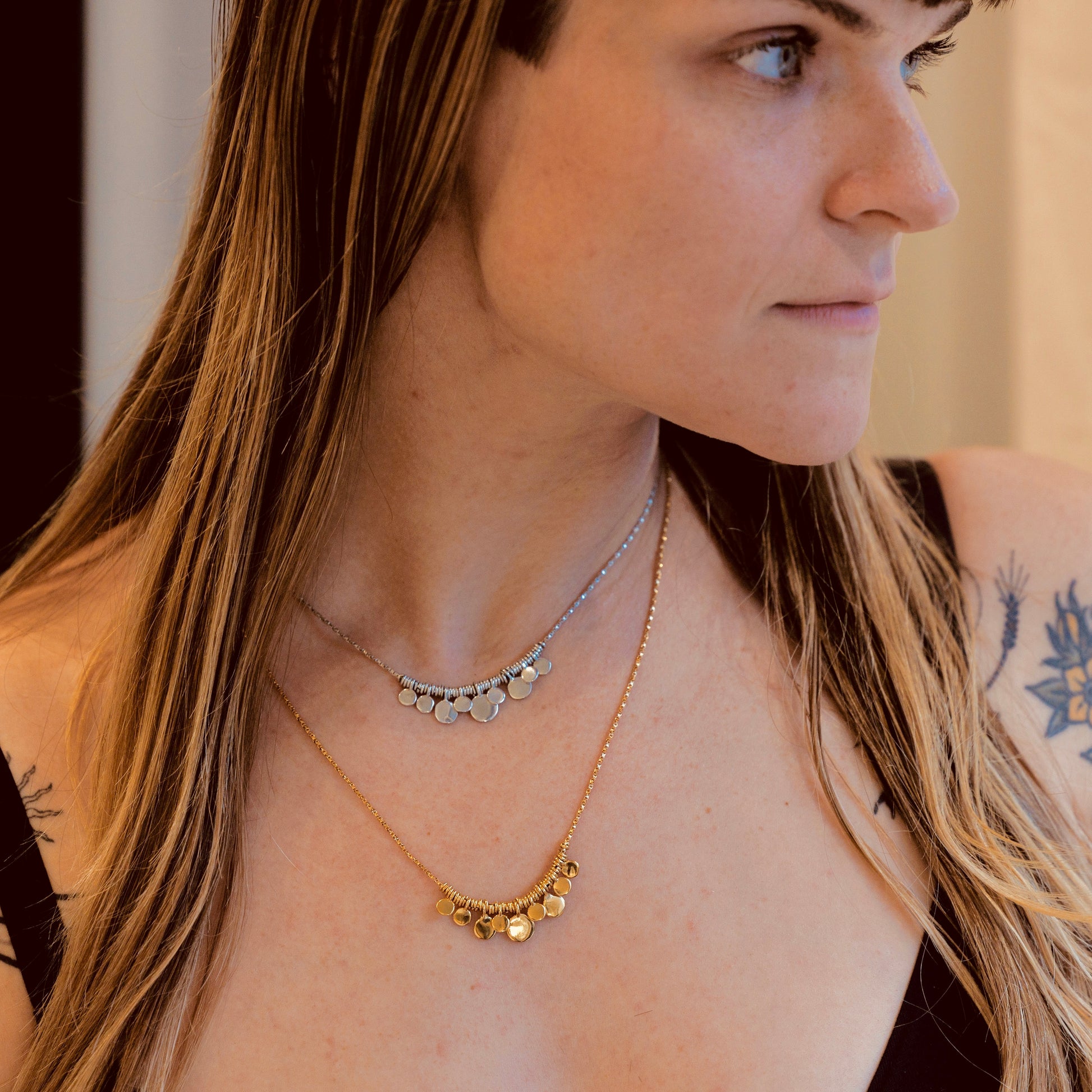 Lead a charmed life in this delicate, feminine necklace. The Charmed Cluster is a great layering piece that pairs easily with our “traveler” pieces. Customers love this look.