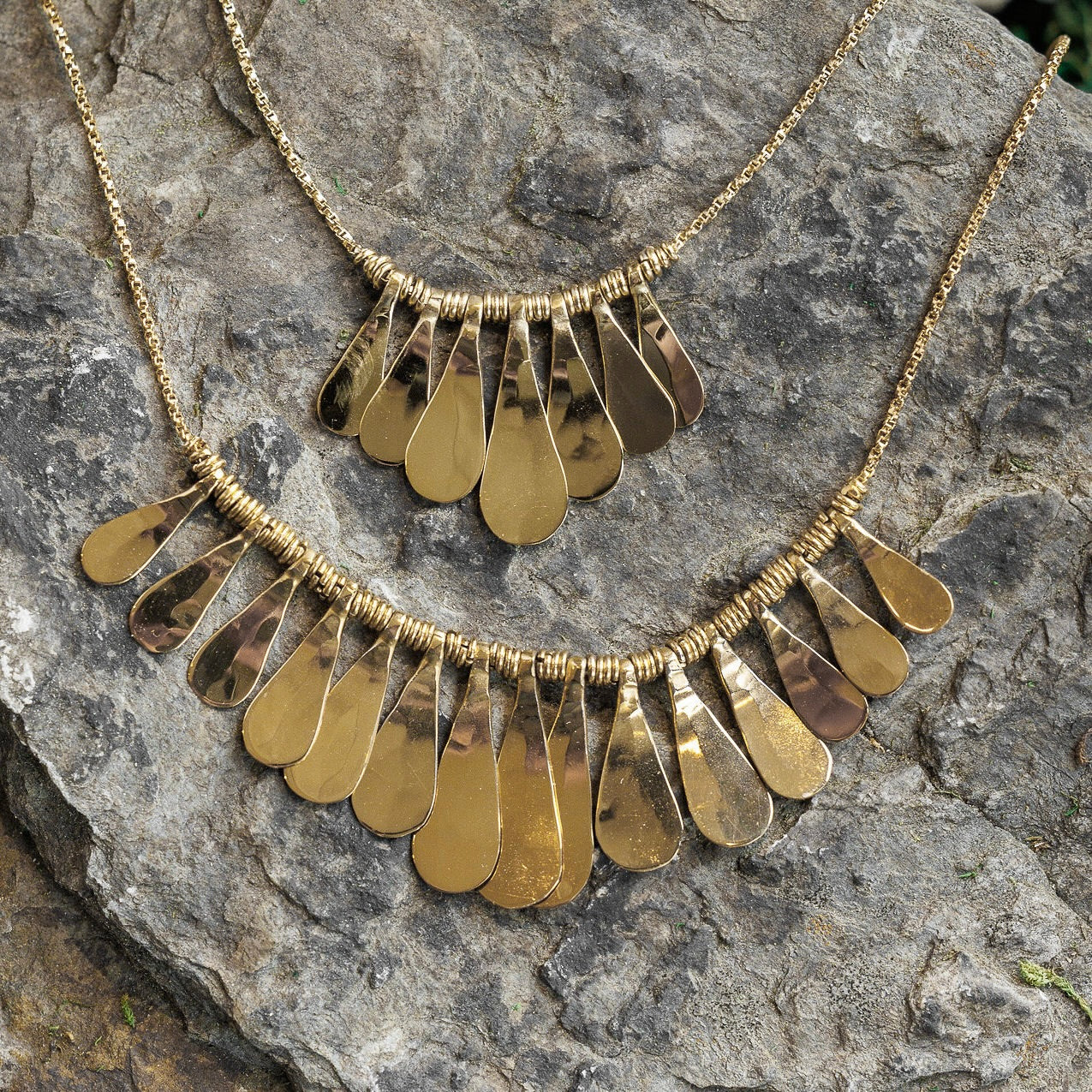These beautifully crafted “Flare Necklaces” are sultry, flirty, and ridiculously sexy beautifullly crafted. Shana’s hammering technique makes them shimmery and lightweight. Pairs well with Flared Duster Earrings, hoops, hammered drops, etc.