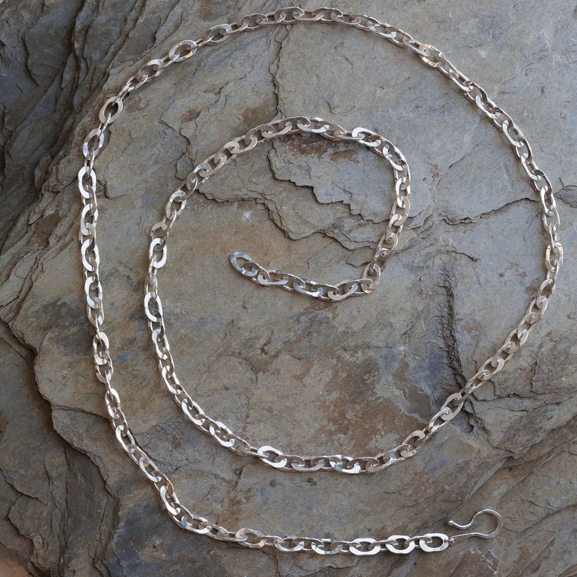 Each of the links in our “Lynx” Light necklace is hand made from solid sterling silver. The special hand made clasp can be attached at any place on the chain giving the wearer length options. These pieces are tough but super sophisticated and are a testament to Shana’s dedication and craftsmanship.