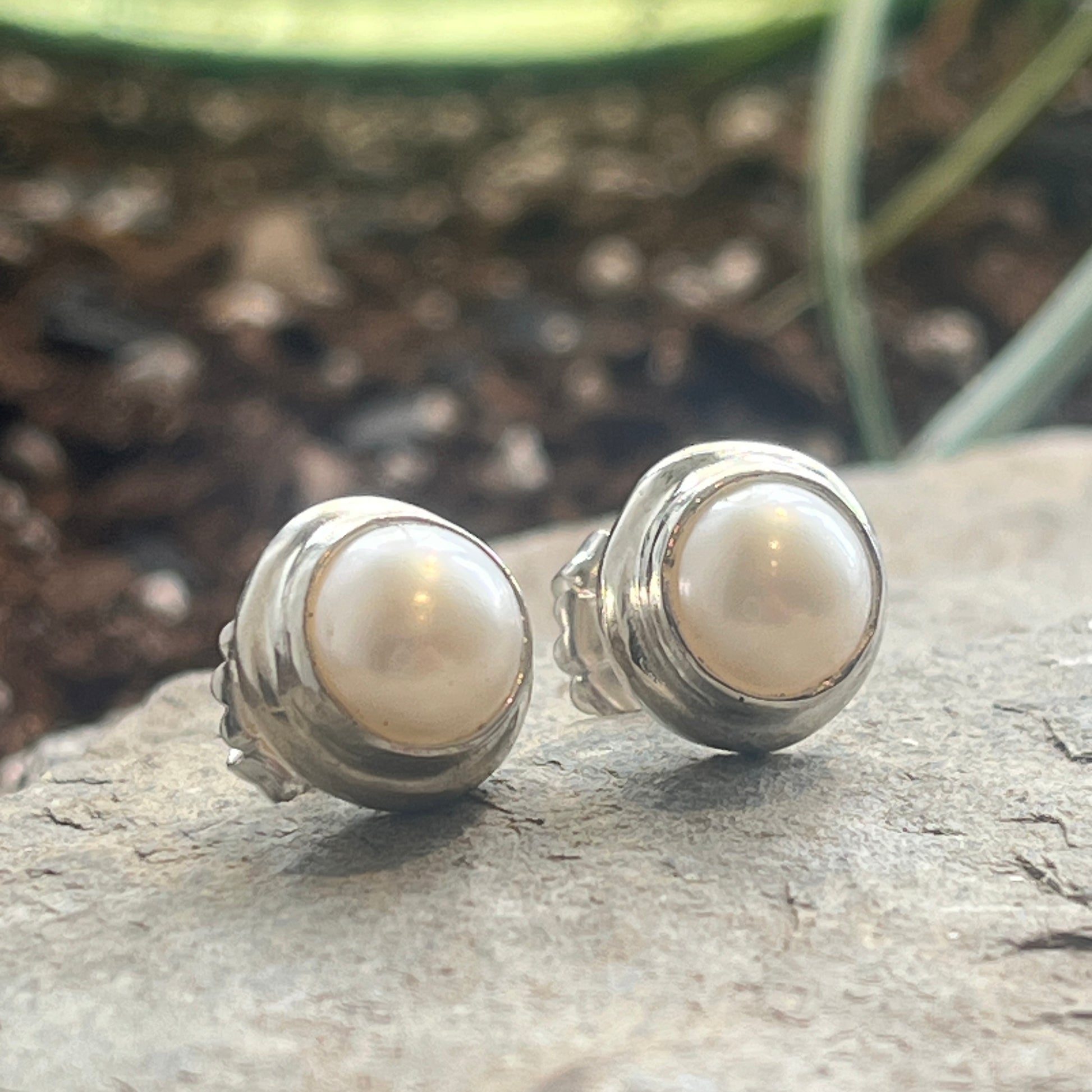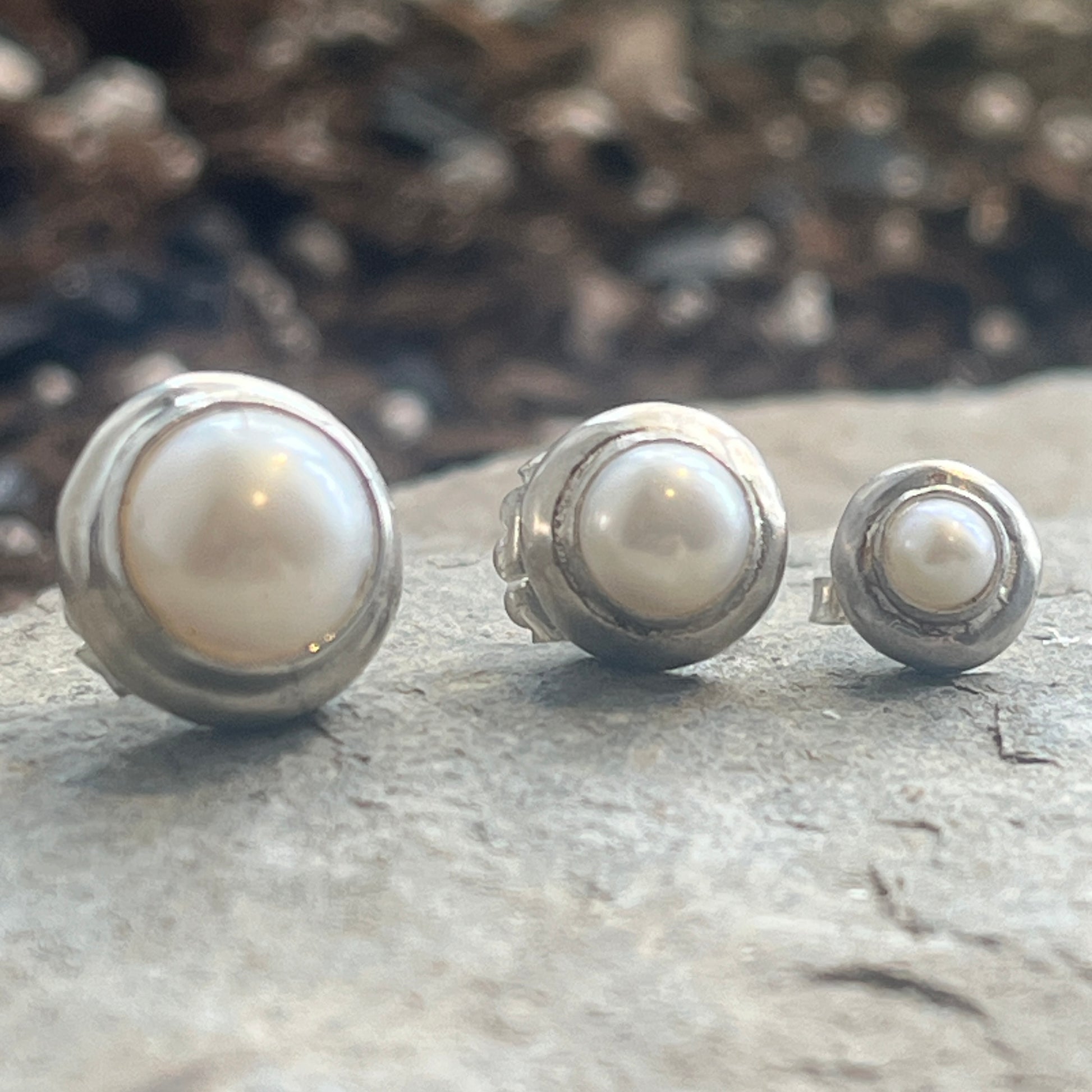 Classic pearl studs that leave prim and proper to the past. Available in 3 sizes.