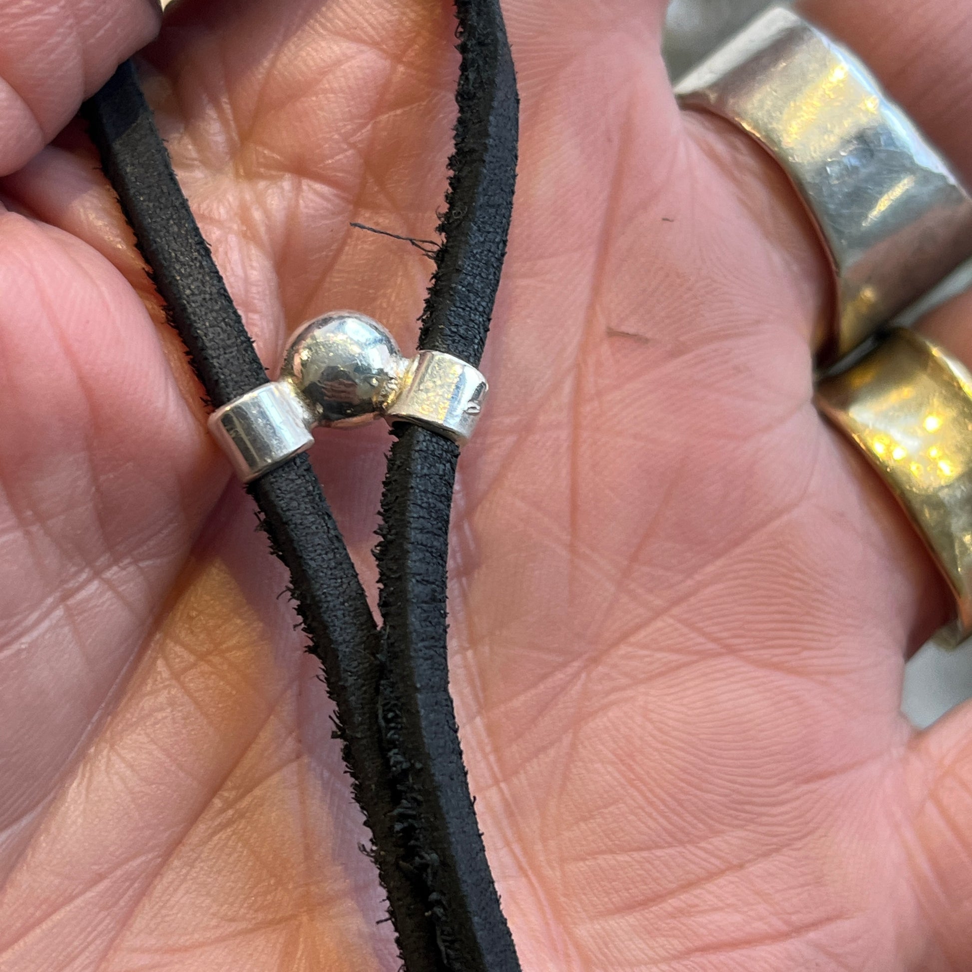 The long leather cord has a slide clasp so can be worn at any length up to 37”.