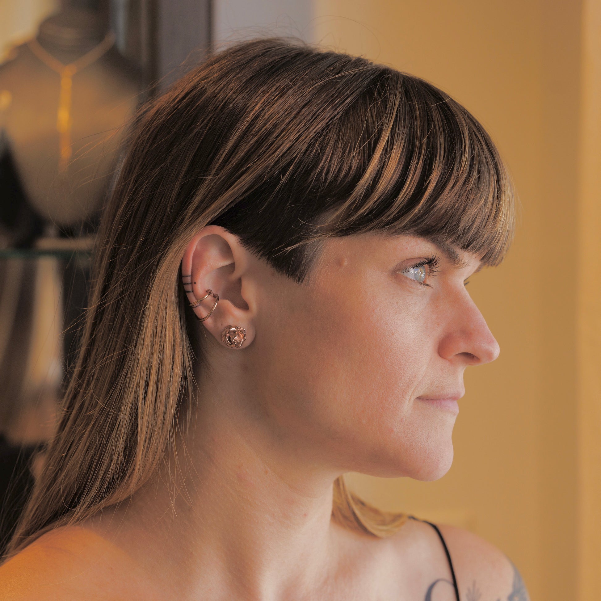 1/2" rose studs. We think that each color has a different feel: The Yellow Gold Vermeil are elegant & dressy, the silver are rock n'roll, and the rose gold vermeil are pretty, sweet, sexy, & cool. These are easily dressed up or down.