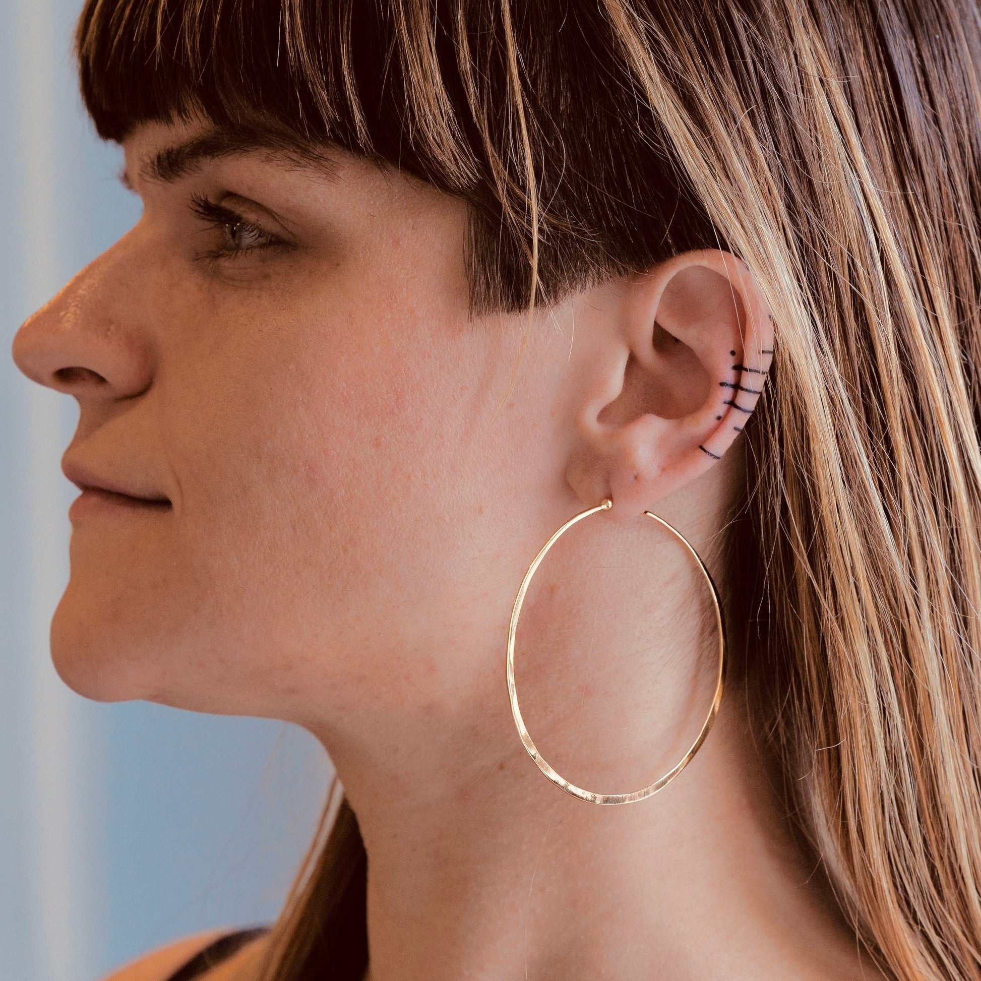 Our beautiful, sterling Yellow Gold Vermiel Nana Hoop is light & slim. They are the perfect classic small, medium to large hoop that go with everything.