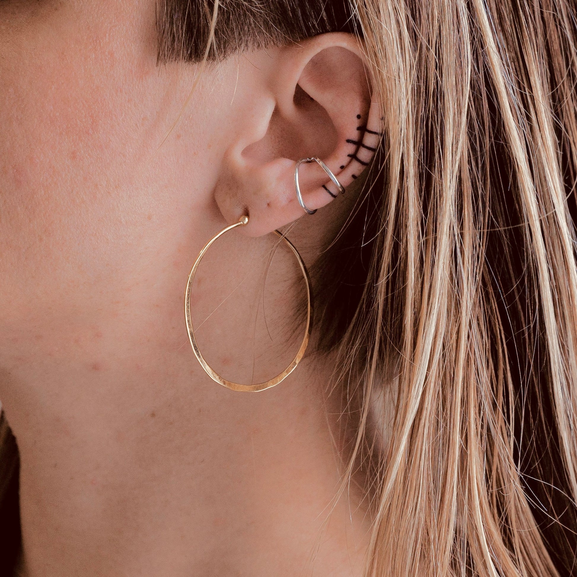 Our beautiful solid gold Nana Hoop is lighter & slimmer version than a typical hoop. They are the perfect basic hoop, in any size, that go with everything