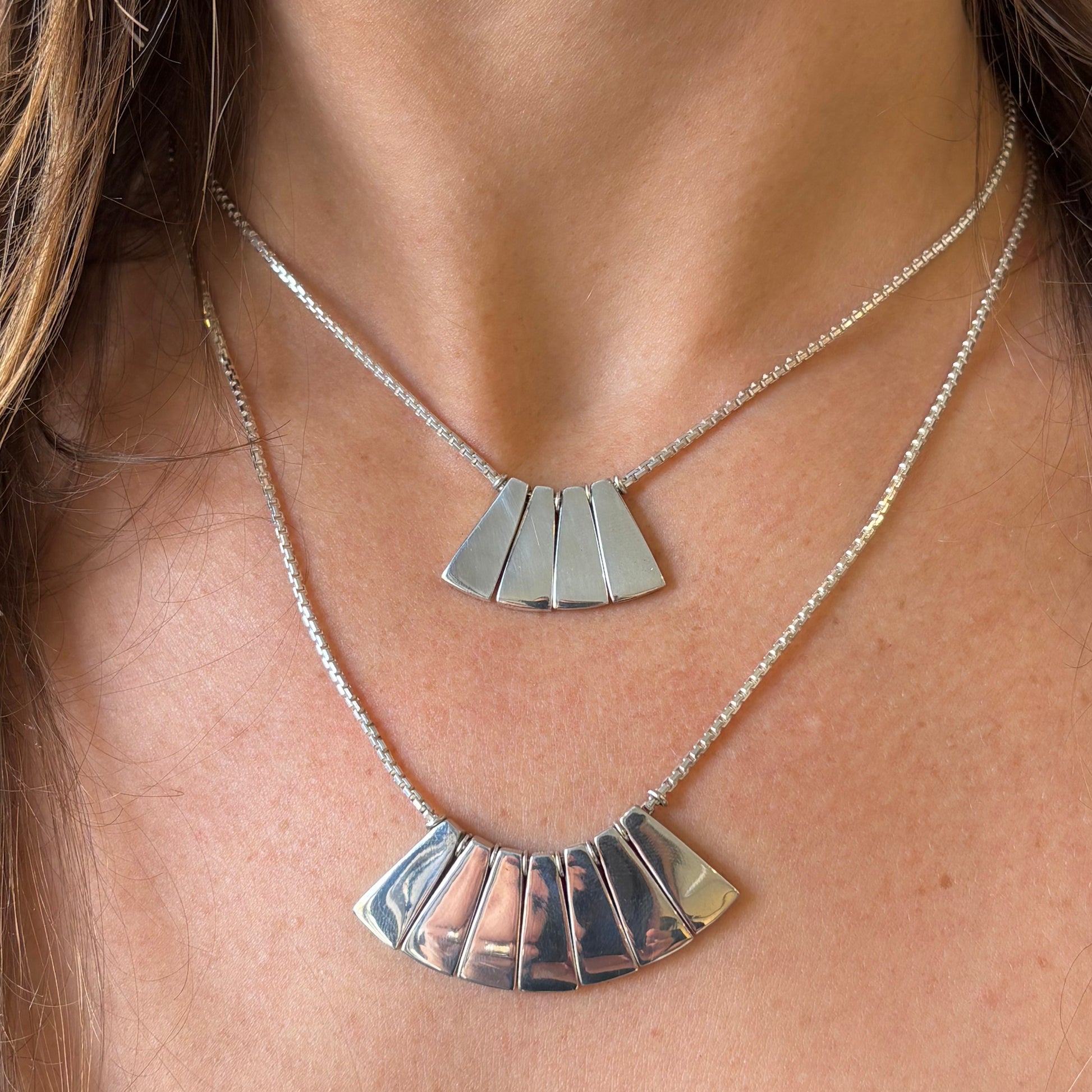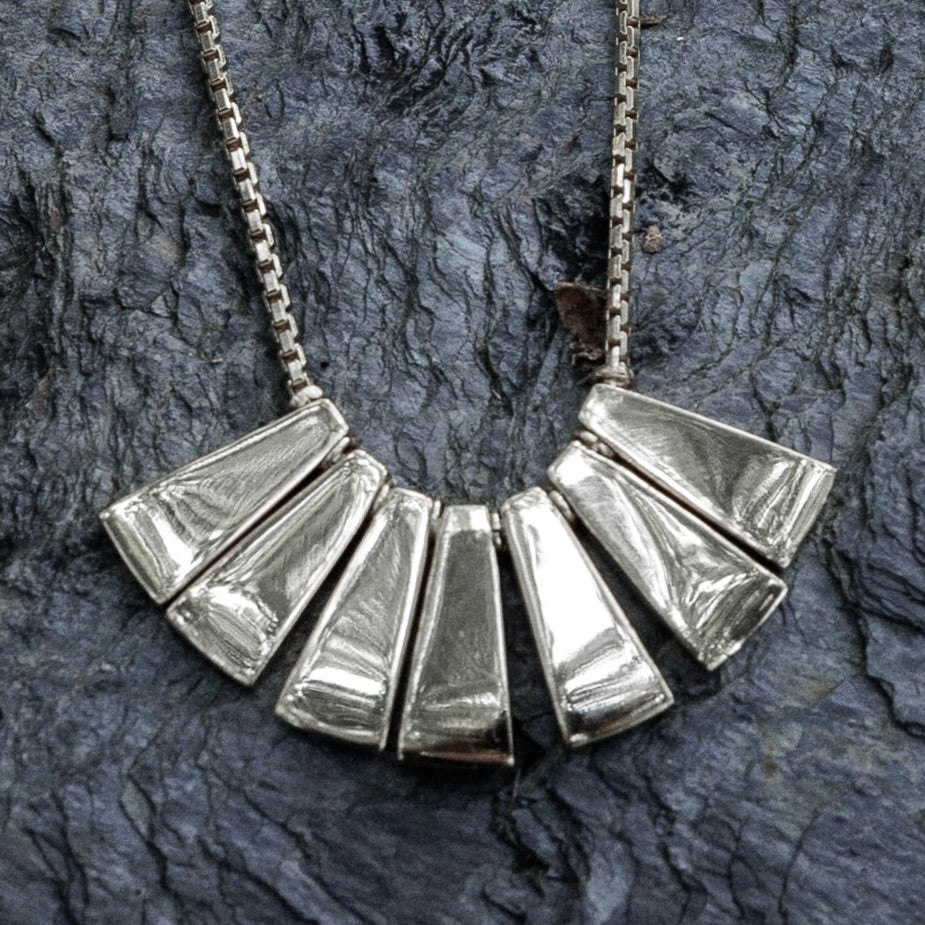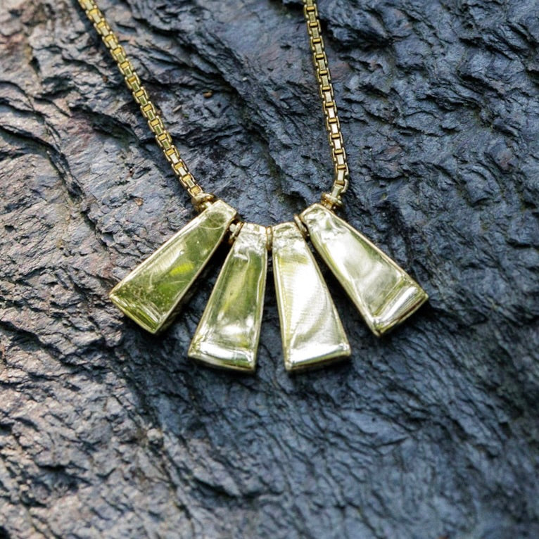 Choose 7 beads for a bigger impact, and 4 for a more subtle one. These solid trapezoid beads were first made in clay then are cast. They feel modern and ancient at the same time.